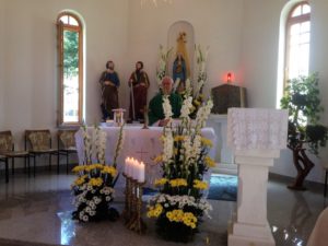 SASINA, 18. VIII. 2019. Misu je imao fra Drago Ljevar u župnoj crkvi u Sasini i na groblju Zimzelena. Župnu crkvu je prekrasno uredila s. Miroslava Ljevar sa svojim novakinjama Ivanom i Magdalenom. Poslije župne mise su nas počastili za obiteljskim stolom ispod nove sjenice. Hvala Magdaleni i Ivani za fotografije. Više fotografija ovdje Odlučili …