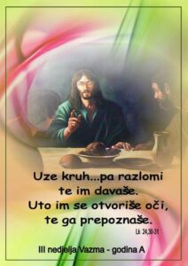 III VAZMENA A CITANJA III VAZMENA A Ev Lk 24,13-35 III VAZMENA A PJESME III VAZMENA A PJESME U 8,30 SATI III VAZMENA A PJESME – misa u 10 III VAZMENA A PJESME MISA U 20 SATI III VAZMENA A RAZMISLJANJA PLAKAT III USKRSNA A: PLAKAT 2 III VAZMENA A Obavijesti 4. V. 2014. internet …